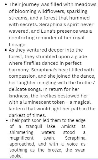 So, dream boldly, explore fearlessly, and never underestimate the power of your heart's light to illuminate even the darkest paths. Just as Princess Seraphina's story has kindled a spark within you, may your own story inspire others to believe that with a heart full of courage and a spirit that knows no bounds, anything is possible.